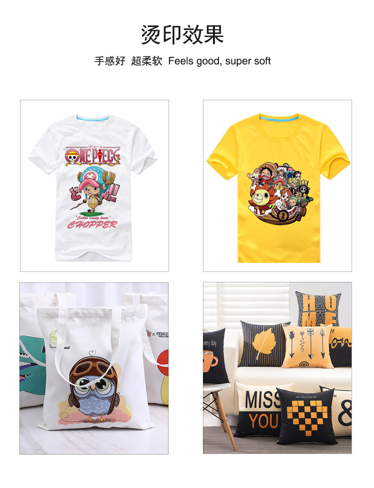 熱轉(zhuǎn)?。?/span>印花出來的效果是有凸感的,而熱轉(zhuǎn)印顧名思義就是轉(zhuǎn)移圖案和花紋,運用熱跟壓力把膜上的花紋和圖案轉(zhuǎn)移到被印物的表面。