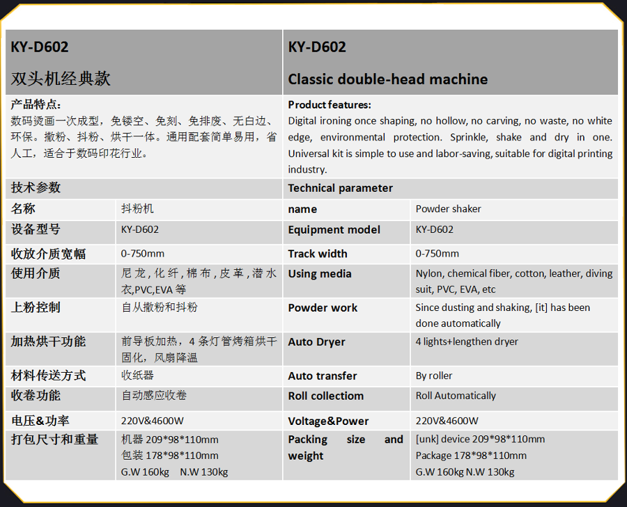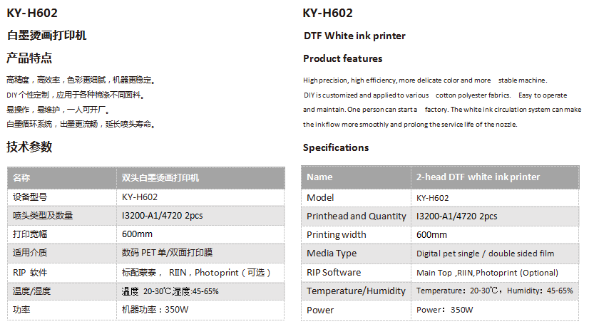 KY-H602-D602白墨燙畫2頭機漢森板卡